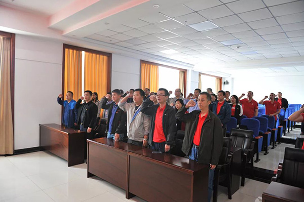 两位领导讲话完毕,台下响起了热烈的掌声。党委副书记李荣录介绍了公司党建工作的开展情况,李书记从六大方面对“探索党建新思路,建设标准化党组织”这一指导思想作了详尽阐述,认真分析了党组织现状,表示会进一步教育广大党员坚定理想信念、牢记党的宗旨、增强党员意识,不忘入党初心,对党忠诚,永葆党的*性。